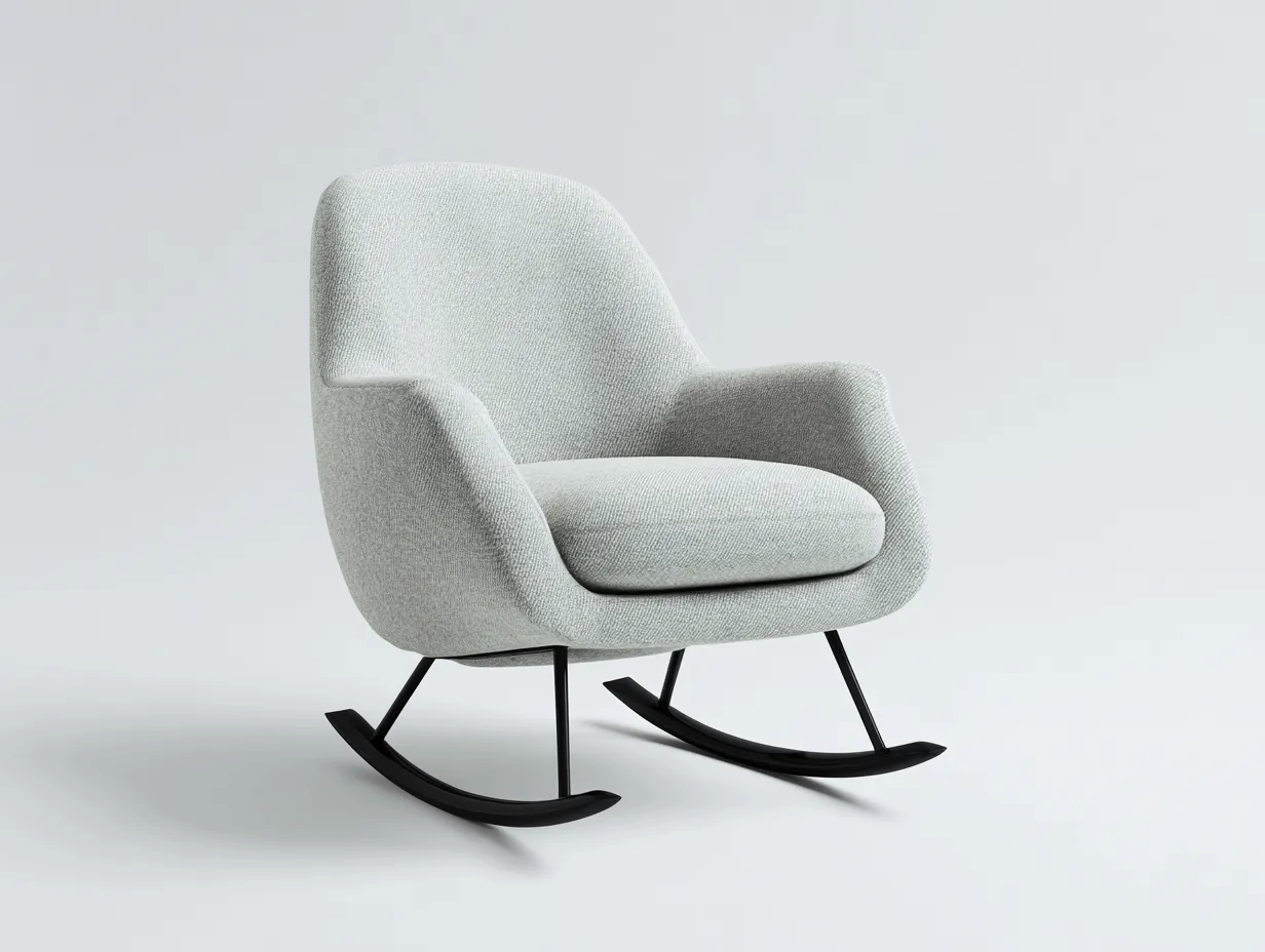 Sedia a dondolo progettata per ambienti interni come soggiorno, zona lettura o camera da letto. Il profilo morbido e la struttura compatta favoriscono una seduta stabile e rilassante, adatta all'uso quotidiano.